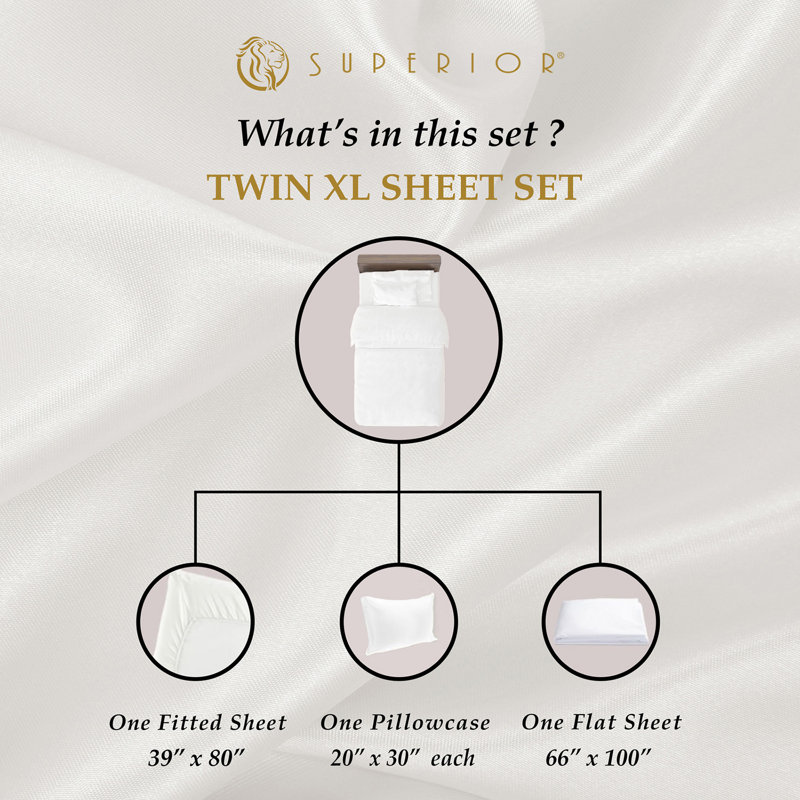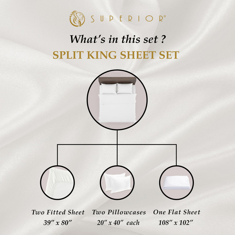 The set includes: one flat sheet, one fitted sheet, and, two pillowcases (twin and twin xl include one pillowcase; split king includes two fitted sheets)
