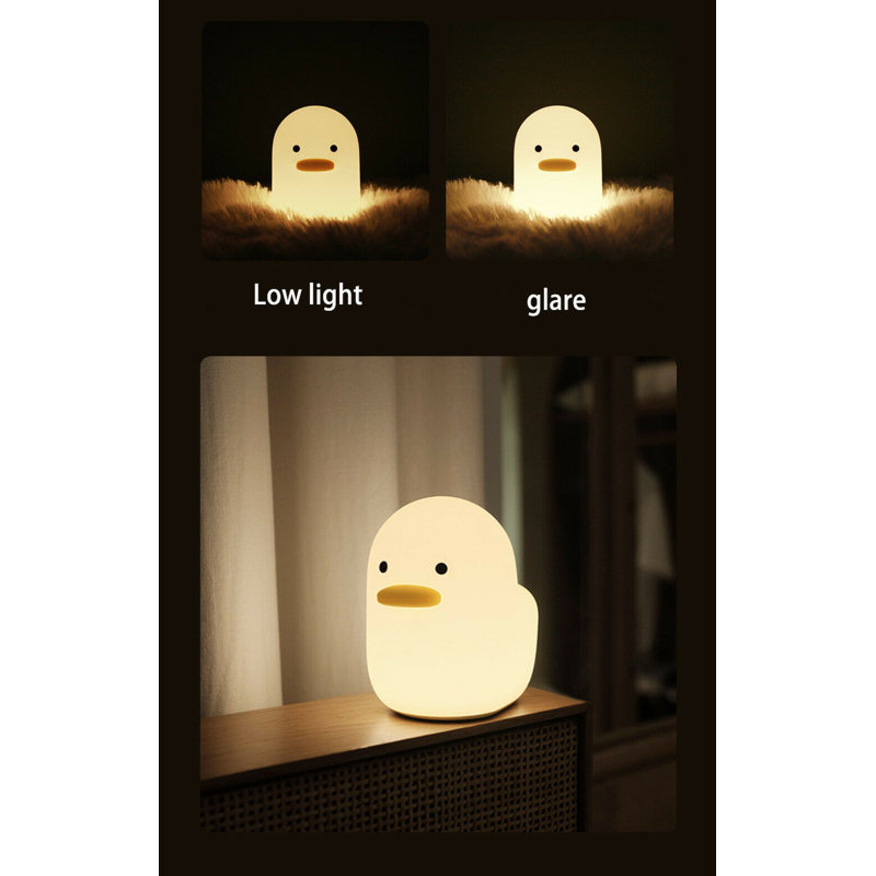Super cute duckling night light. Warm light is suitable for sleeping at night. The silicone is soft and skin-friendly. Automatically turning off the lights after a delay is more worry-free, and you can sleep peacefully at night and be accompanied. soft and comfortable, more suitable for night. Easily switch between strong and weak, bright and dark.