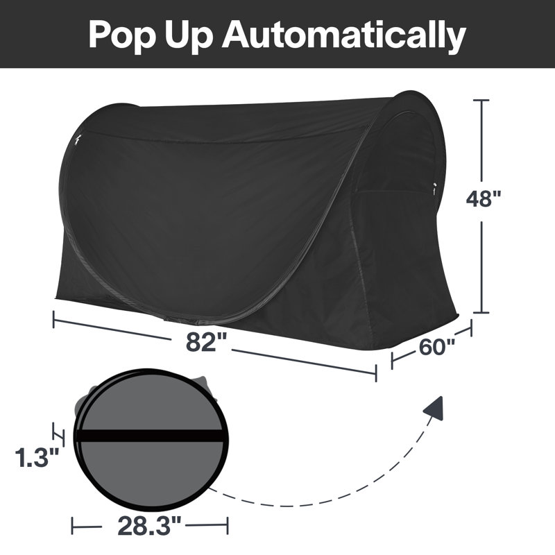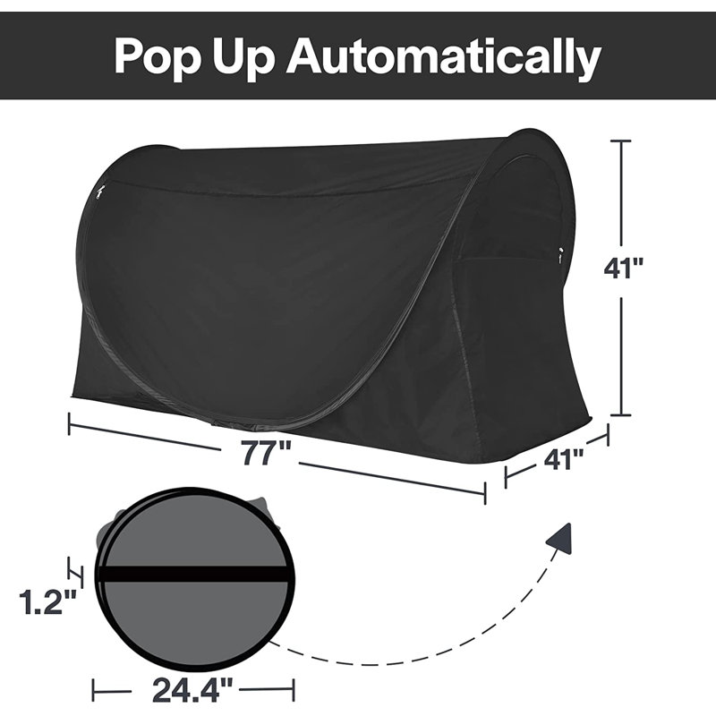 Easy setup & take down: This bed tent is for twin size bed, measuring 77†L x 41†W x 41†H, for a full-size bed, measuring 77″ L x 55″ W x 47″ H, and for a queen size bed, measures 82″ L x 60″ W x 48″ H. Pop up automatically, no assembly needed, super easy to set up in a second. Fold down instant and figure 8 twice fit into a compact portable carry bag size dia 24.4†x 1.2â€, convenient for you to carry and store.