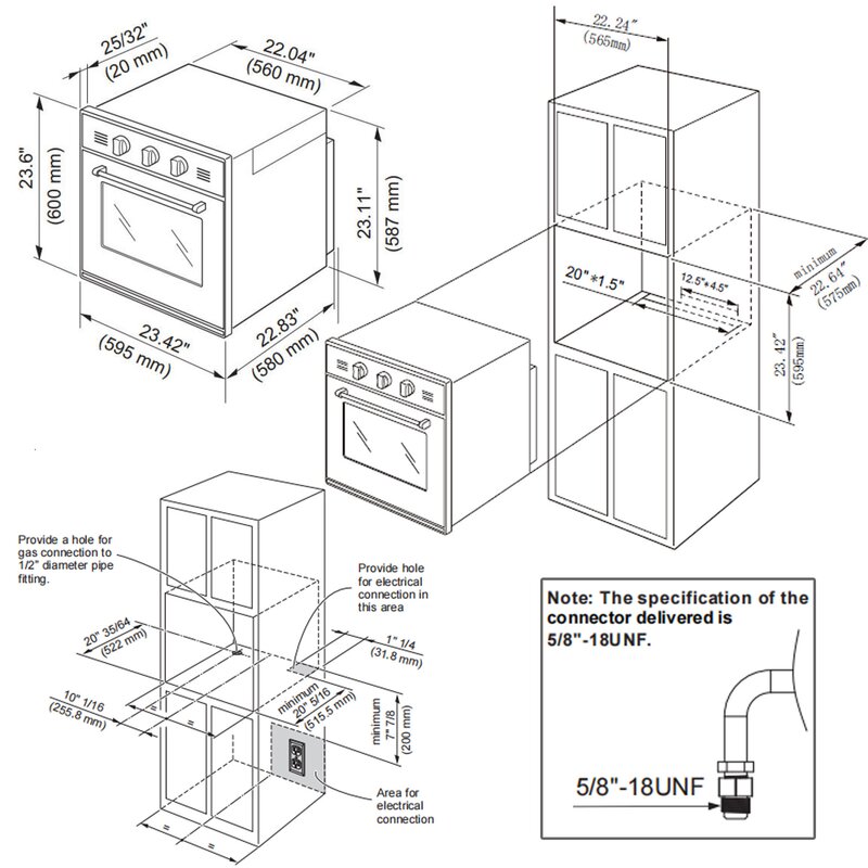 Cutout : 22.42” W X 22.64” D X 23.42” H