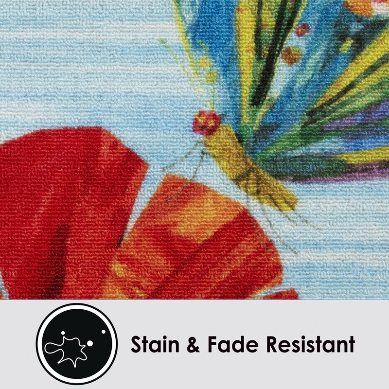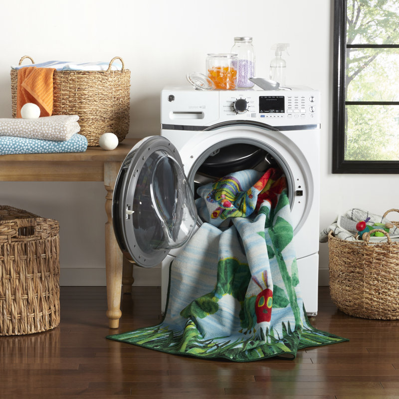 Make your kids’ days brighter with the colorful Eric Carle Elementary Sun area rug by Home Dynamix. Carle’s cheerful design, inspired by his bestselling book, “The Very Hungry Caterpillar”, is brought to life with a brilliant sun smiling down at the caterpillar in a vibrant garden scene. A perfect addition to any kids’ room, playroom, or classroom, the rug is stain and machine-washable for easy care. Non-skid backing helps keep the rug in place so children can play safely.