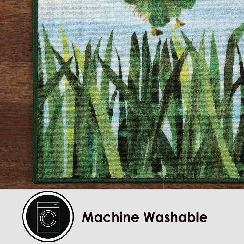 Cheerful & Colorful Design: The Eric Carle Elementary Sun kid’s area rug showcases a colorful garden scene featuring the title character from Carle’s bestselling book, “The Very Hungry Caterpillar” and adds a cheerful touch and soft surface for playtime.