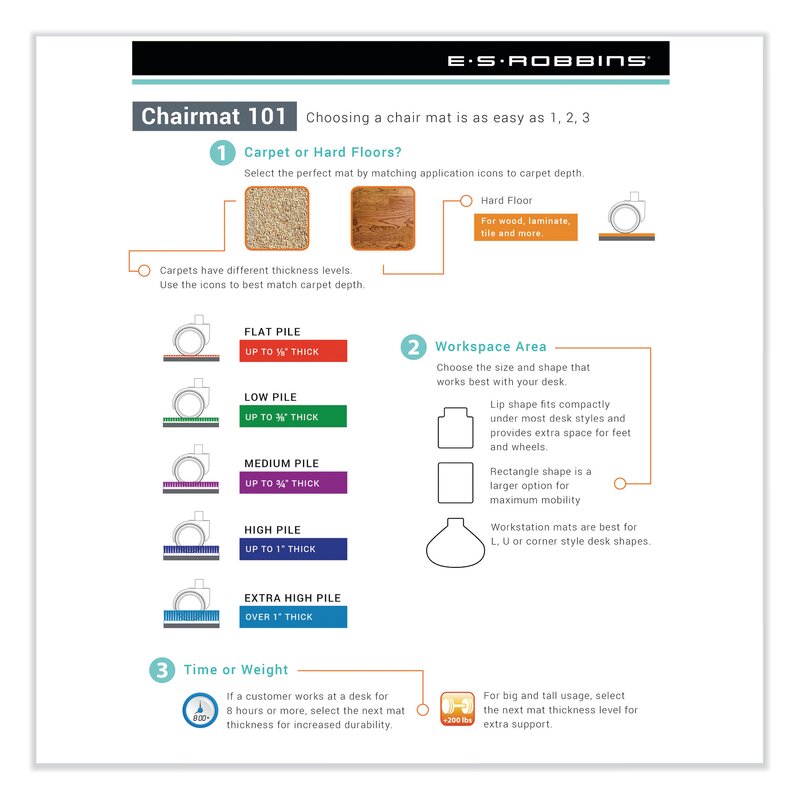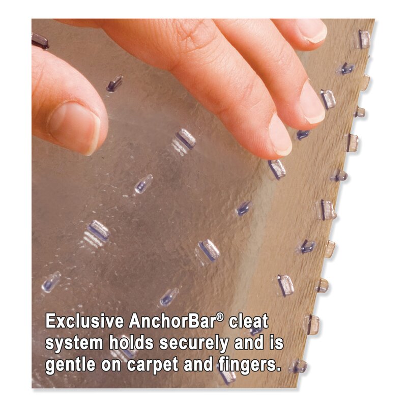 For use with a low pile or commercial carpets up to 0.25” thick including the padding. High-quality, task chair mat ideal for home and light office applications. Anchor Bar cleats hold firmly in place. Straight edge. Protects against wear and tear from chair casters. Engineered for optimum clarity, high performance, and a smooth effortless roll. Straight edge.