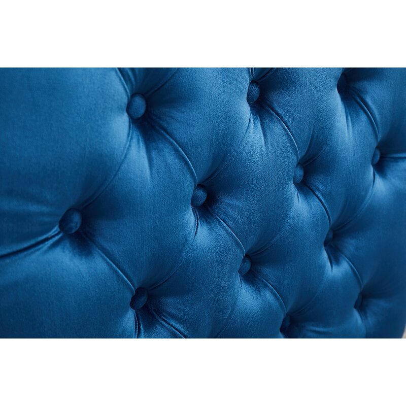 This features an abundance of button-tufting arms. The nail-head trim adds a touch of elegance while the low back.