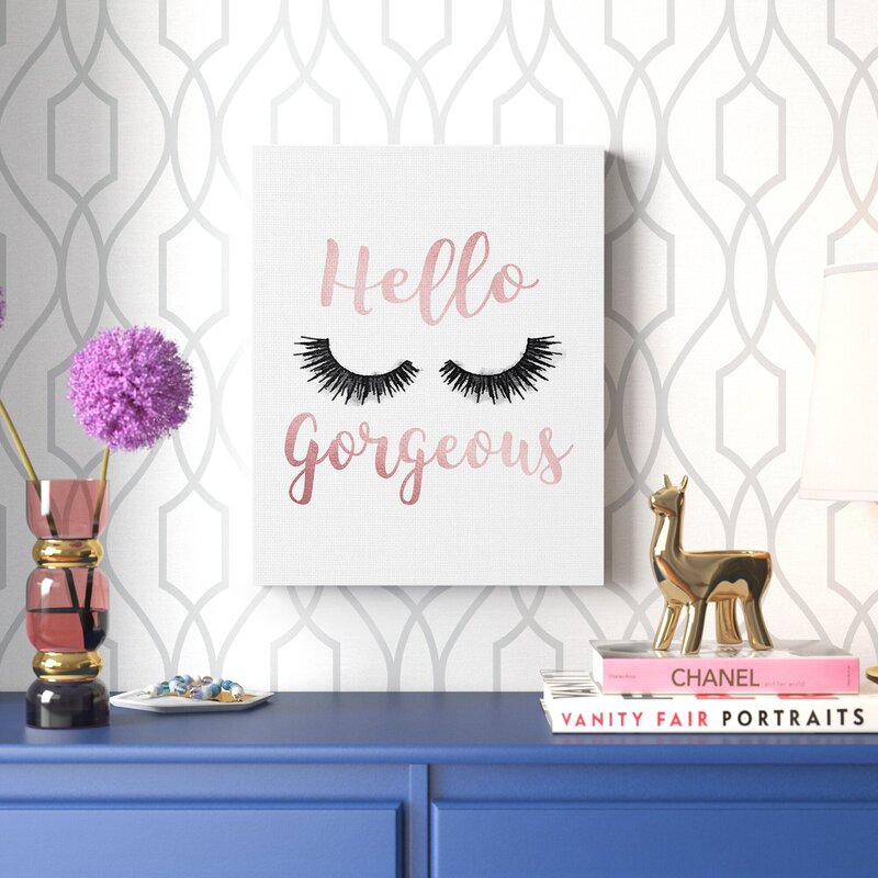 This graphic art print by Amanda Greenwood starts your teen’s day with a positive spin. On a flat white background, pink script writing reads: “Hello gorgeous.” It also features a set of eyelashes adorned with black mascara for a dramatic touch. We love that this print is made in the USA and is printed on wood or canvas. This graphic art print comes ready to hang right out of the box. Pick this up for your favorite teen that loves a glam accent.