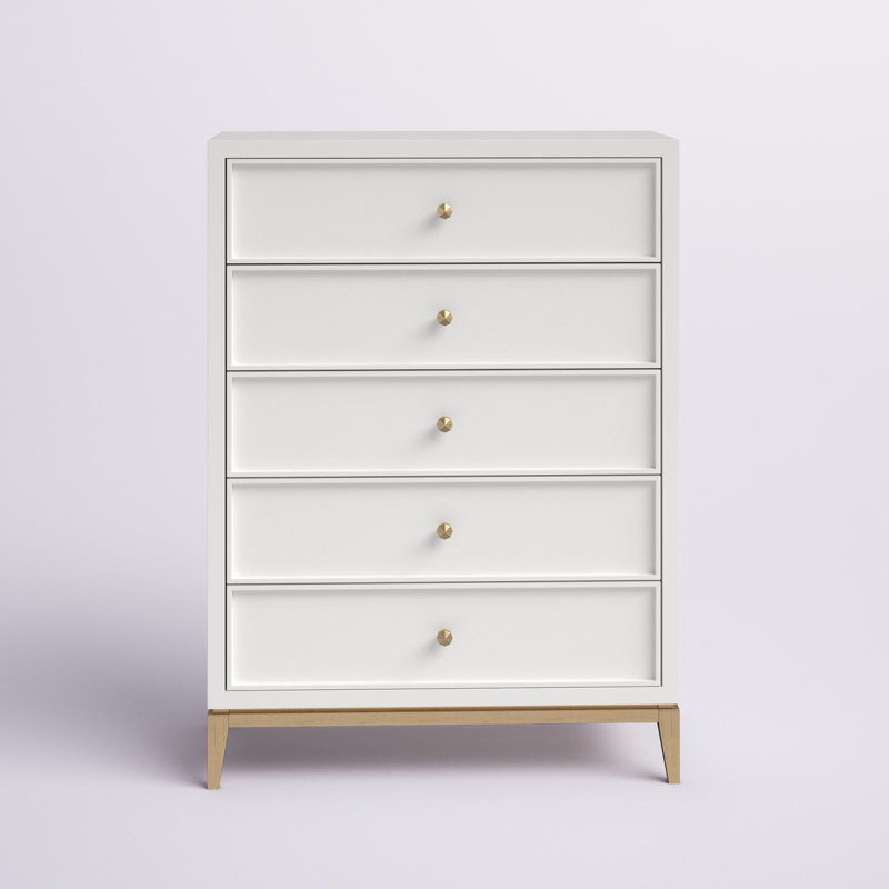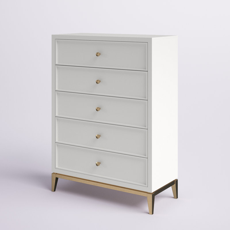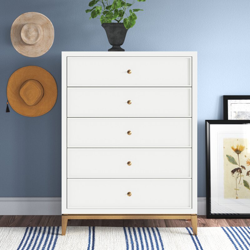 This 5-drawer dresser marries functionality with chic style – and we (and your teen) will love the result. It is made from solid and engineered wood with a painted veneer finish in a creamy off-white hue. We love the gleaming gold dresser base and hardware that really glams up the vibe. The five drawers feature a quality dovetail joint construction, picture frame molding for visual depth, and rest on metal ball-bearing glides for smooth operation. And, there’s ample room on the top for decor, framed family photos, and a bud vase of fresh flowers. Very best of all? This set comes fully assembled.