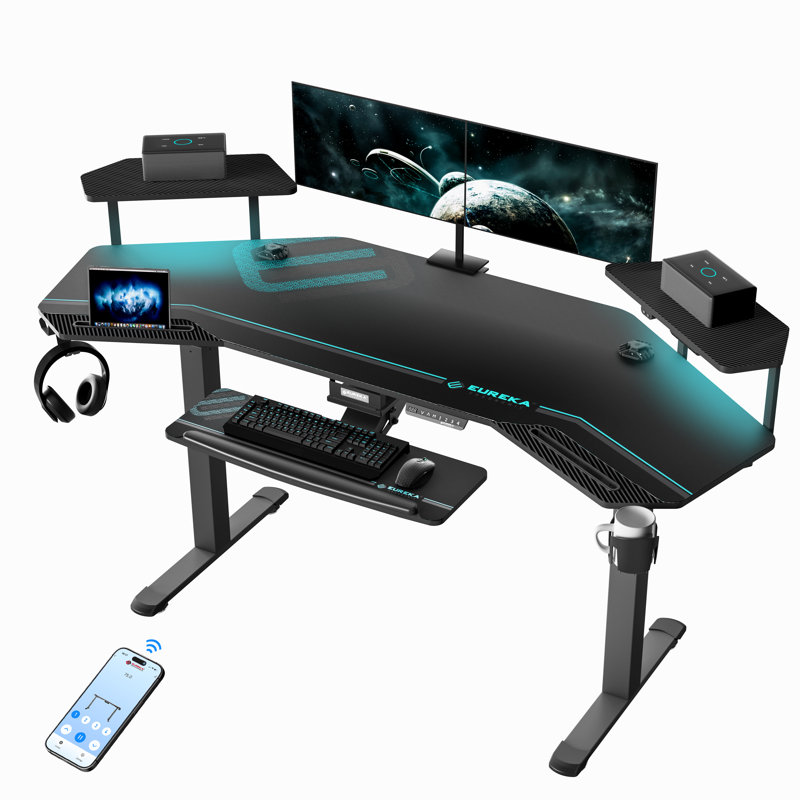 Height adjustable RGB lighting gaming desk with an advanced dual motor system generates enough power to lift the table smoothly, evenly, and quietly. Adjustable height ranges between 29″ to 48″, ideal for any adult.