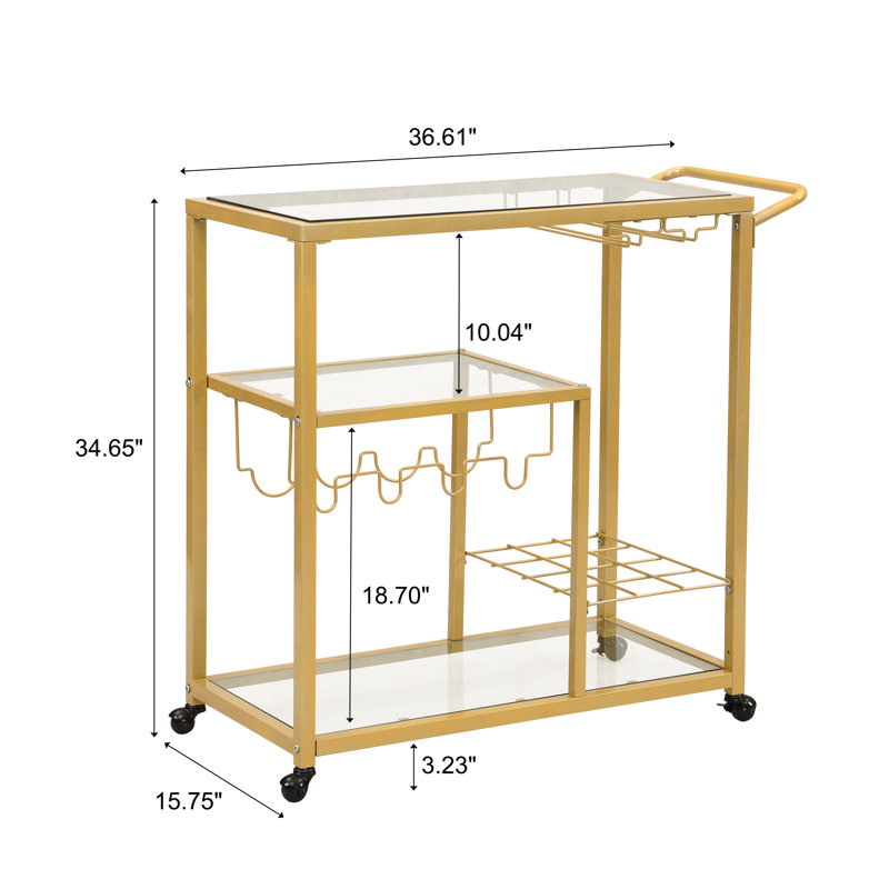 Large Storage Space – Featuring 3-tier glass shelves, this piece provides plenty of space to store food trays, wines, fruits, drinks, or some snacks, while the wine rack and glass holder keep bottles and glasses within easy reach.