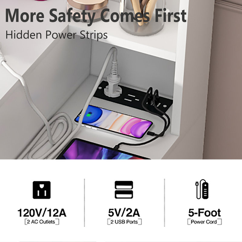 â¤â¤ã€Vanity set with USB ports and outlets】To avoid the trouble of frequently pulling the socket plate, the dresser is equipped with a built-in power supply, containing 2 USB ports and 2 sockets. It can charge your mobile phone in time, and at the same time use a hair dryer or curling iron to create a more perfect makeup, and can also charge humidifiers, desk lamps and other small electrical appliances, making your life more convenient and convenient