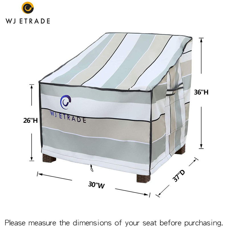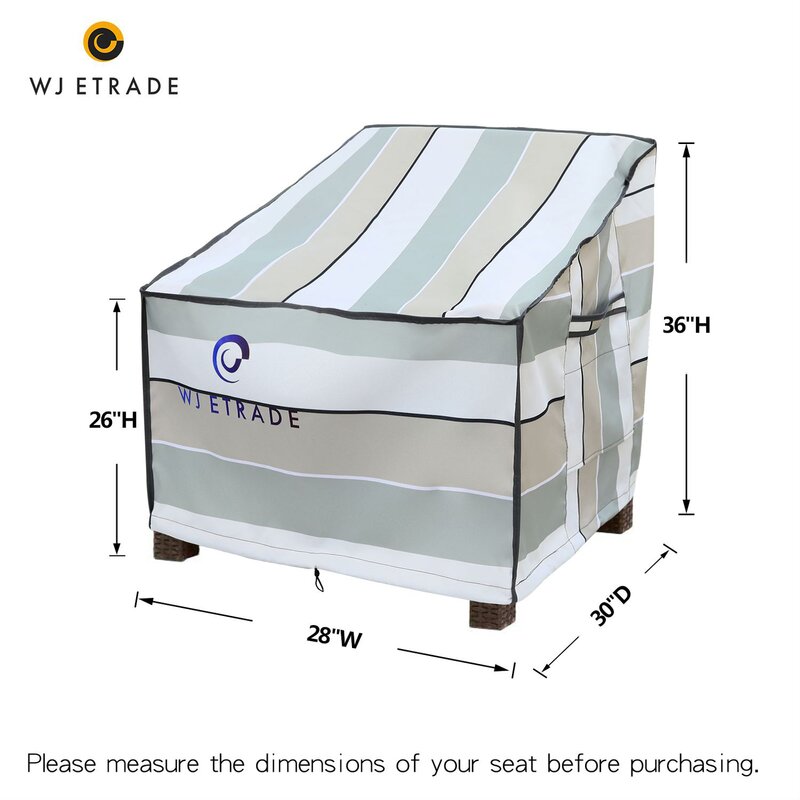 I love my new chair covers! They are beautiful, made of extremely study fabric and yes they really protect the chairs from water – it’s been raining for a week since I put these covers on and my cushions and chair are bone dry underneath. The wind straps to secure the cover to the legs of the furniture are also a great feature and easy to strap and unstrap. Cover is roomy enough where I can slip on quickly and with little effort.