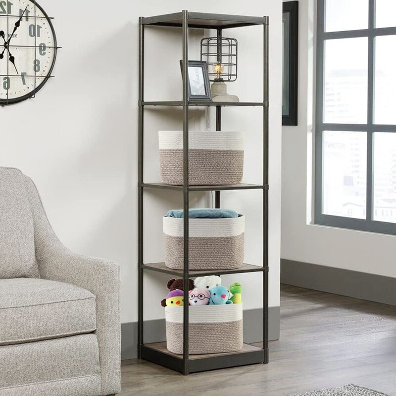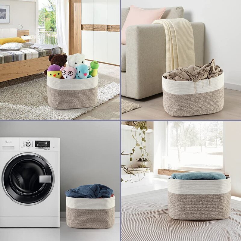This 3-piece set of storage baskets helps you organize your little one’s space while bringing a traditional, handcrafted look anywhere you place them. Each basket is crafted from cotton, and it comes in two gray and white tones that add a fresh, crisp neutral color scheme. Oval in shape and 9.8″ deep, there’s plenty of room inside to keep smaller toys, wipes, diapers, and more. Have them rest on an out-of-the-way shelf or line a table in a playroom or bedroom. This set also includes handles that blend in with the woven design, so it doesn’t stand out.