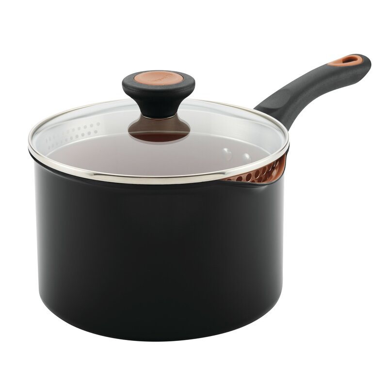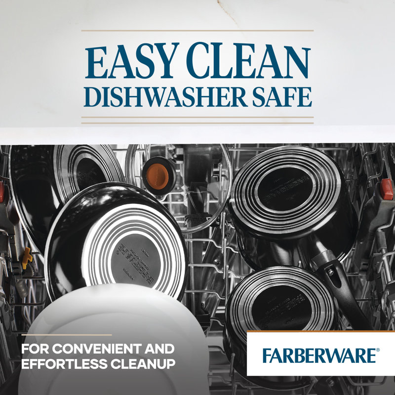 Ditch the colander and steam veggies or make the perfect al dente pasta with ease using the unique Farberware® glide copper ceramic nonstick straining saucepan. This super-functional straining saucepan is constructed from fast and even-heating aluminum and boasts copper slide technology for effortless nonstick food release and easy cleanup of even the stickiest recipes like spaghetti carbonara. The copper ceramic nonstick is dishwasher safe for easy cleaning, and the easy-hold handle provides a comfortable, confident grip to flip, fry and sauté with ease. The shatter-resistant glass lid has a built-in strainer, so managing shrimp boil or asparagus steaming or a pot of ravioli is a simple, step pour of cooking liquids. Oven safe to 350° for the stove to oven versatility, the skillet pan is backed by Farberware’s hassle-free, no worries lifetime warranty. For great performance and long-lasting durability, reach for the farberware® glide copper ceramic nonstick skillet with copper slide technology.