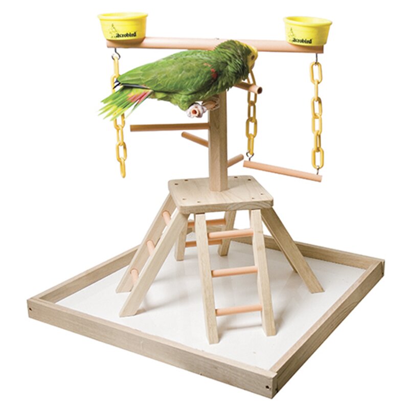 The all-natural gym that has lots of space and provides lots of fun and excitement. Features four ladders appropriately sized for medium-sized birds. It includes two cups for food and water. Easy to assemble.
