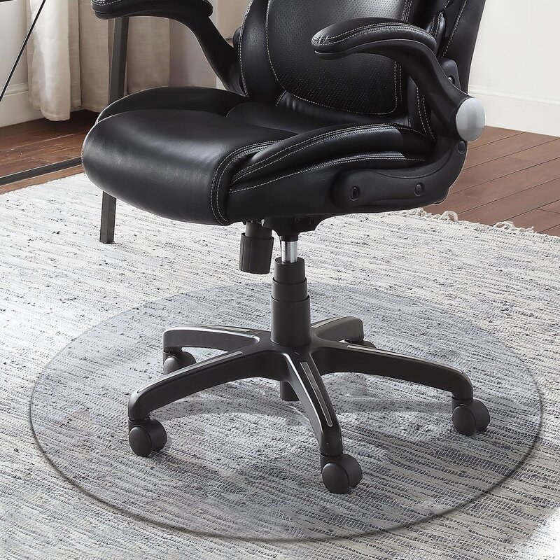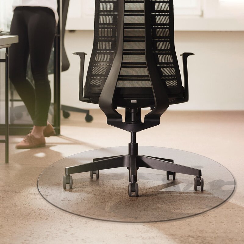 We have 3 people working from home and I am the only one that doesn’t require privacy so I am stuck in the dining room. I just purchased a new area rug from Wayfair and I didn’t want to put holes in it from the traditional plastic mats or damage the rug. This is such a great option. My rug is visible and you barely see the outline of the glass, plus, I am not putting holes or indents in the rug. Sure, I occasionally roll off the edge of the glass but I figured out how to control myself and I am sure you can too.