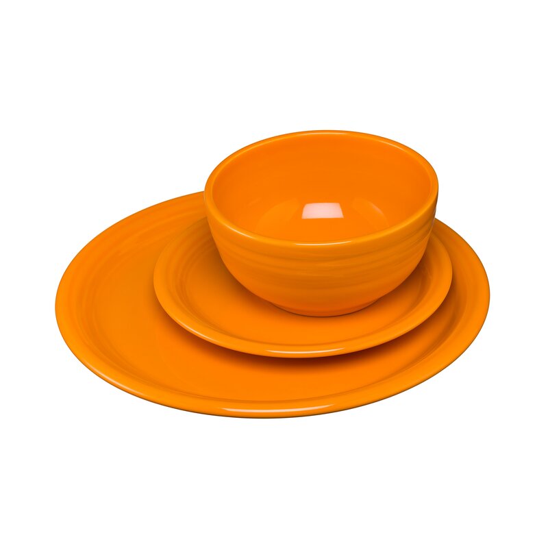 The 3pc bistro set features a 22-ounce small bistro bowl, an ideal serving size for cereals, salads, soups, pasta, desserts, and much, much more. Complementing the small bistro bowl are a 10 ½†bistro dinner plate and a 7 ¼†bistro salad plate, both featuring a narrow rim and deep coupe styling. Measuring the same as our classic plates, the bistro Plates offer a wider food surface and deeper well to keep foods better contained.