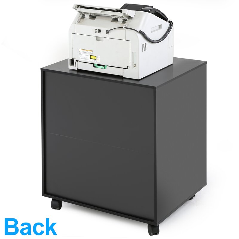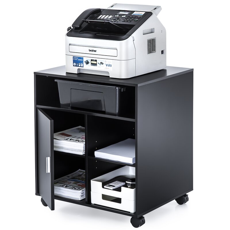Printer stand on casters with brakes, so moving it around is simple and practical