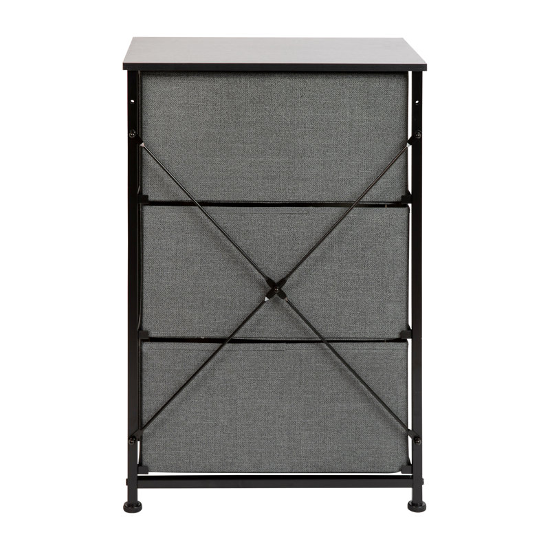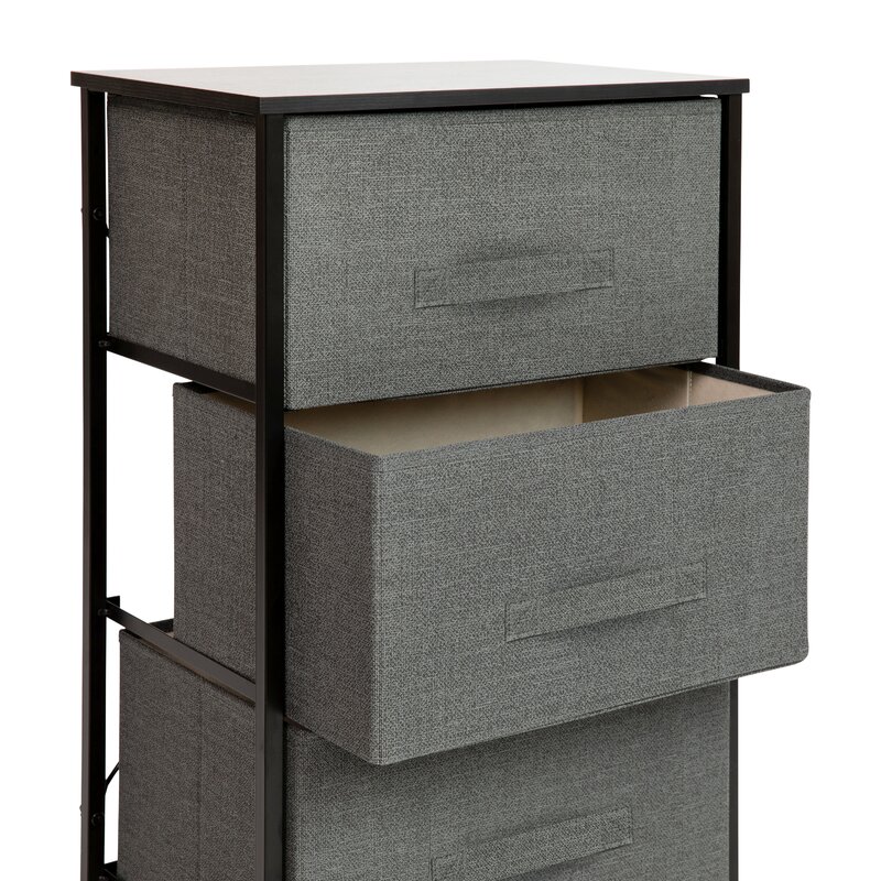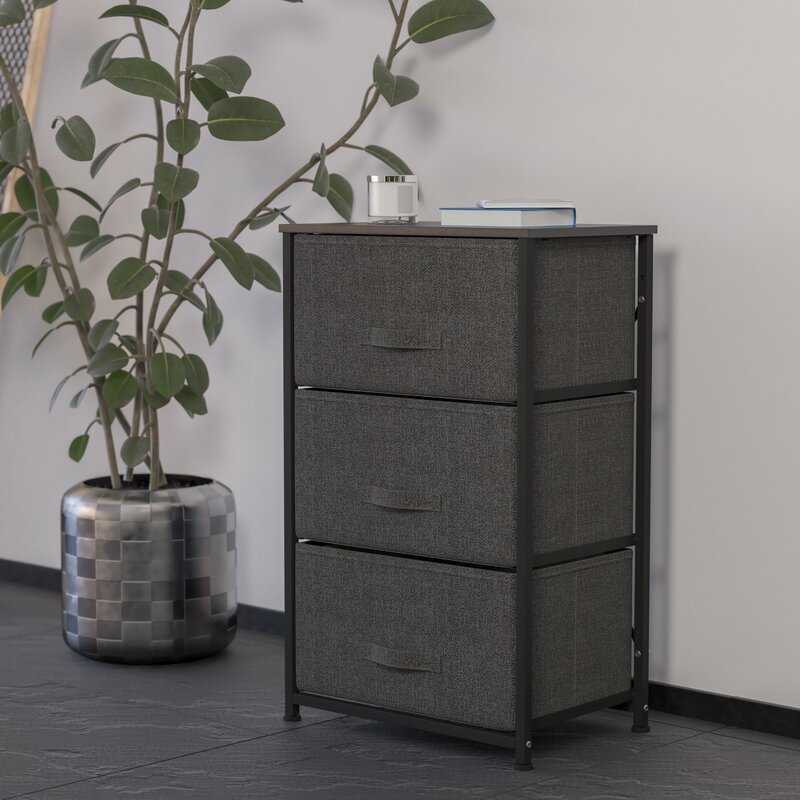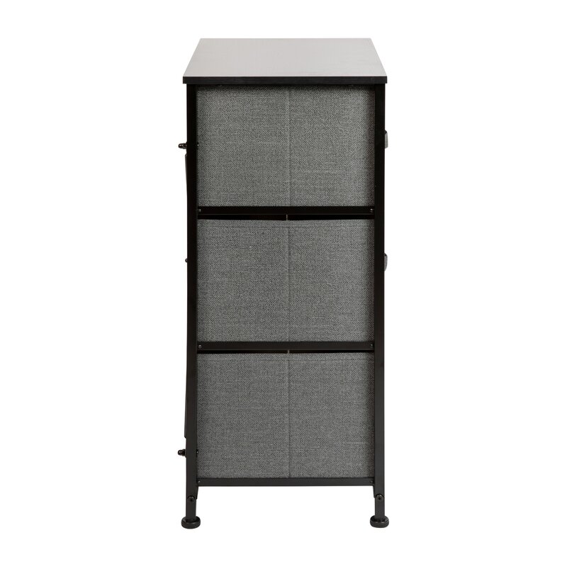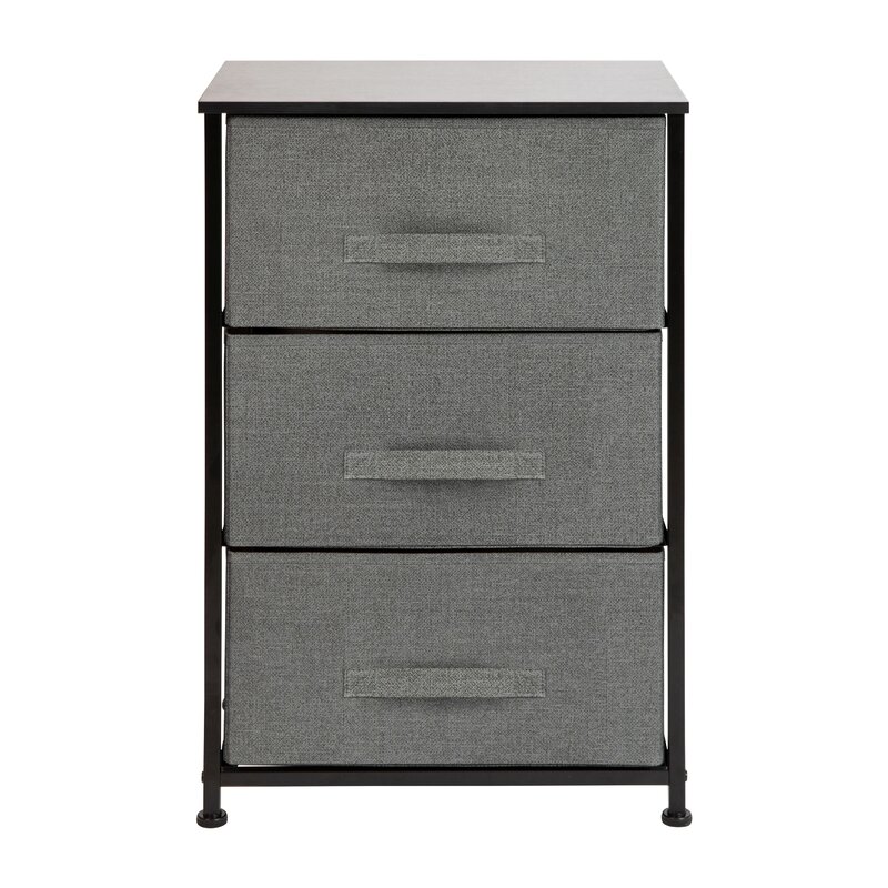 Get much-needed storage at an economical price that works anywhere in your living space with this 3-drawer vertical organizer. Whether you need a place for current or out-of-season clothing, washcloths, or charging cords and remote controls, the three easy-pull fabric drawers are a perfect solution. Use this vertical storage tower as a nightstand to hold your cell phone, glasses, or nighttime glass of water. Storage doesn’t have to be bulky to be strong. Metal screw construction securely joins the powder-coated cast iron frame of this fabric dresser together. The durable engineered wood top provides a hard surface to set books, lamps, or a vase of fresh flowers and holds up to 40 lbs. static weight capacity. Non-Woven fiber drawers not only look great but are fade and stain-resistant to help this dresser with drawers retain its great looks. Quick and easy assembly can be achieved in 10 minutes or less with step-by-step illustrated instructions or an online PDF. Plastic adjustable floor glides protect your hard flooring surfaces and provide a stable platform on uneven flooring surfaces. Quickly remove spills with a clean damp cloth. Use this vertical dresser in or out of your closet for an extra organization that goes above and beyond plain plastic bins.