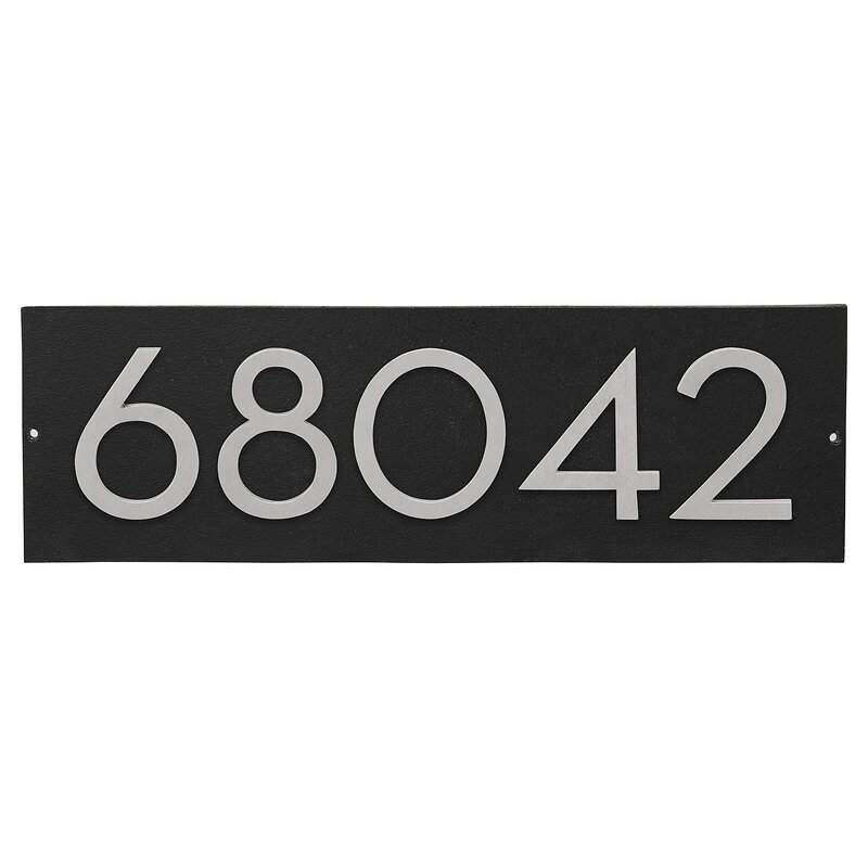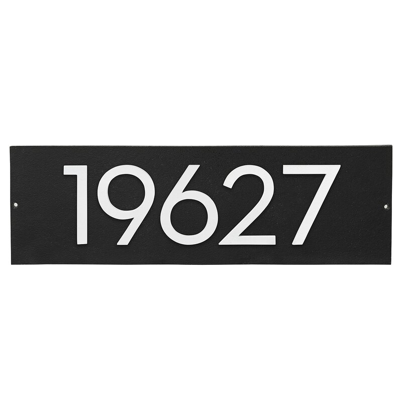 The address plaque is a high-quality, modern-style custom option without the wait. The numbers are securely fastened to the plaque on the back side with countersunk screws to conceal them. Forged in recycled aluminum and finished with a durable two-part paint this plaque will add beauty to your home for years to come.