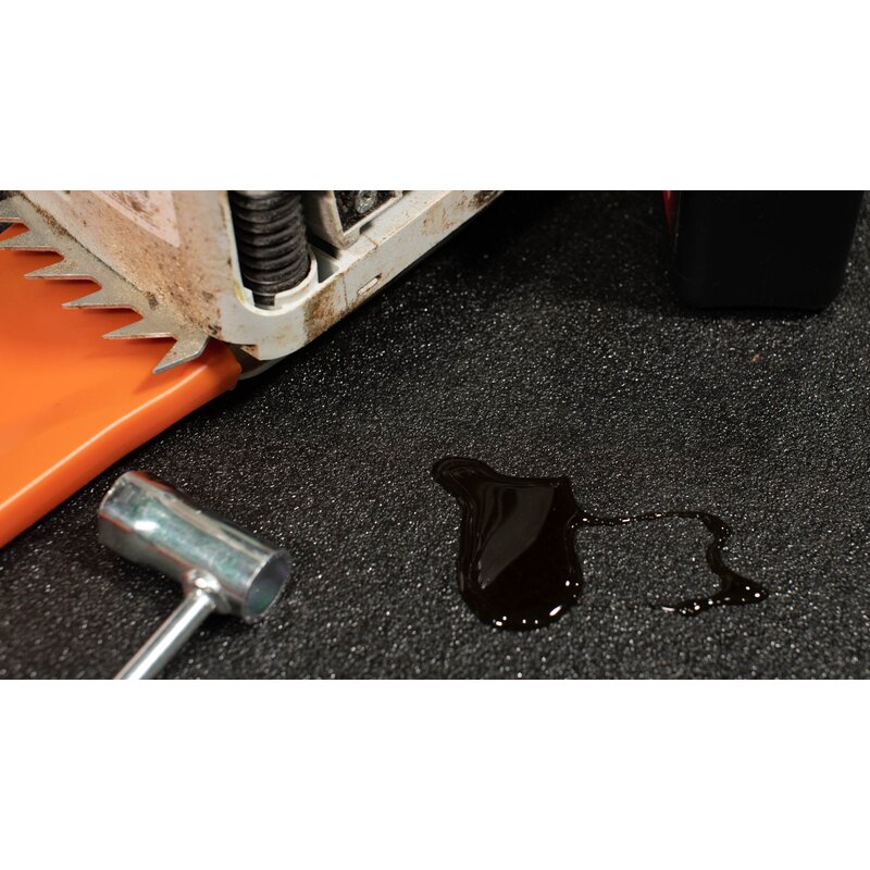 The FlooRx product is the cure-all for your demanding environments that call for high-performance comfort underfoot. Most floor coverings are susceptible to breaking down when exposed to harsh chemicals; however, the floor coating is tested to withstand bleach, gasoline, kerosene, motor oil, animal fats/grease, and most other chemicals as listed in the technical documentation. The interlocking tiles are also waterjet cut to give a seamless monolithic look when installed. This is the ultimate DIY, interlocking utility floor providing a non-porous, cut, tear, and stain-resistant surface that is perfect for almost any demanding environment like workshops, garage floors, maintenance areas, etc.