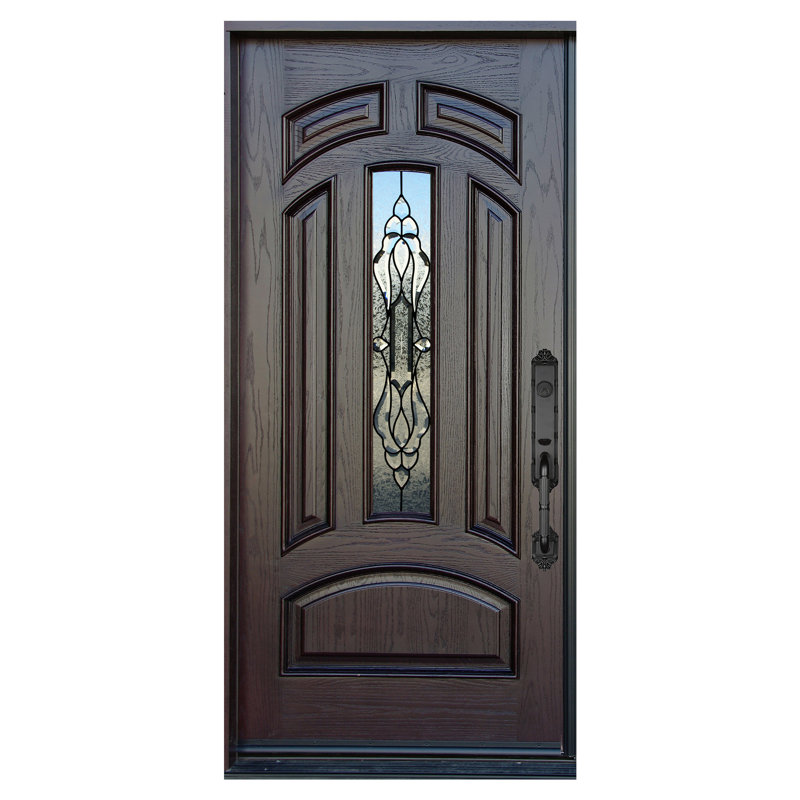 The high-density composite new innovative us patent materials of the entry door are made by high-density composite solid full slab a- stylish patina zinc caming design with decorative insulative glass. door call out (itself) dimension: 36″w x 80″h x 1.75″thickness, net frame dimension (NFD): 37.25″w x 81″h x 5.25″jamb thickness, rough opening: 38″w x 82″h x 5.25″jamb thickness. Left-hand inswing. #3 dark walnut piano touch smooth close finish. Zero moisture content, less maintenance from warped, cracking, splitting, and expanding problems, excellent pre-finish, ready-to-install, and pre-hung hdc door system mosquitos/fly bugs prevented, zero moisture content, eco-friendly and recyclable, termite resistance, hurricane resistance. Excellent pre-finish, ready-to-install, and pre-hung hdc door system.