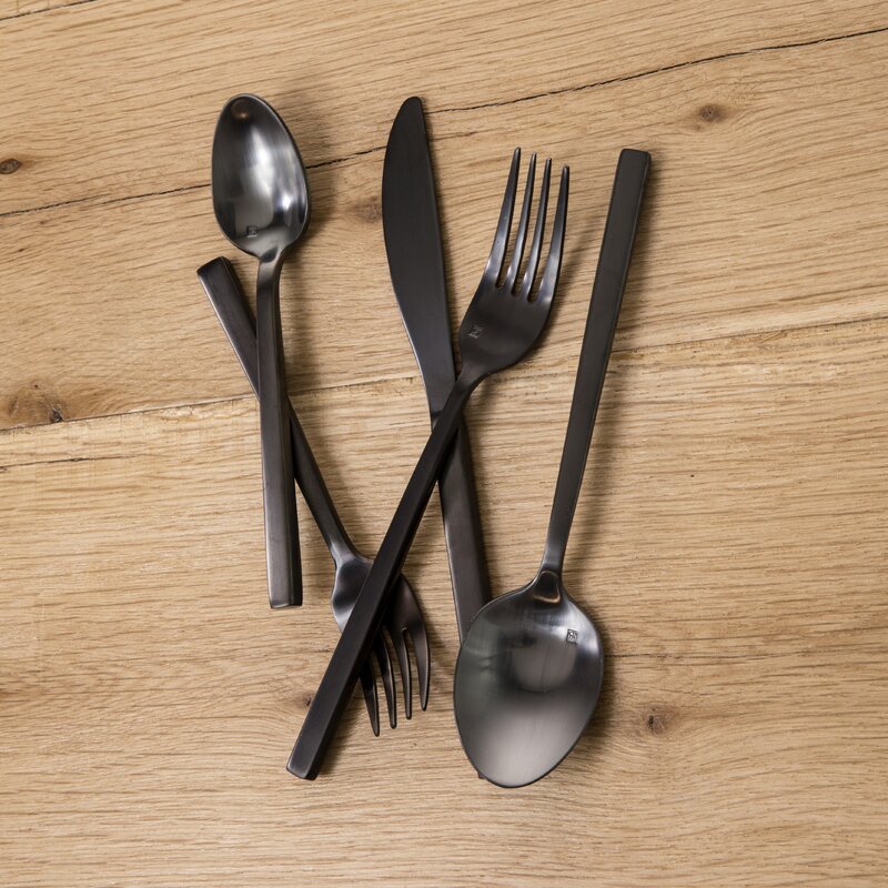 The square handles and stylishly modern profile of Arezzo are enhanced by the alluring brushed black, brushed gold or brushed silver finish that complements any tabletop. Our 18/10 flatware, the highest quality stainless steel available for flatware, includes traditional to modern and fashion-forward patterns. Its designs are visually elegant with a heft and balance that feels good in the hand. The meticulous craftsmanship that goes into stainless steel results in excellent finishing and polishing and the complete execution of designs.