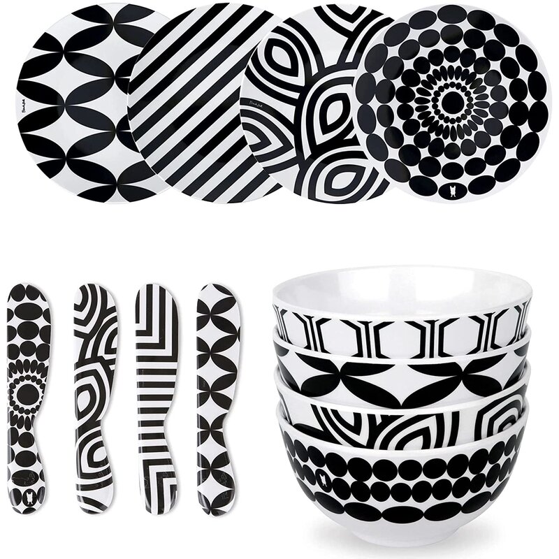 A High-grade, glazed melamine plate is scratch and shatter-resistant, non-absorbent, and BPA-free.