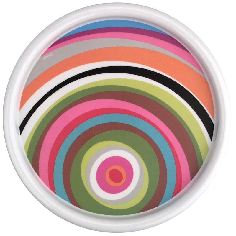 Glazed plate is scratch and shatter resistant, non-absorbent, and BPA-free. Includes rubber rimmed base to prevent sliding.
