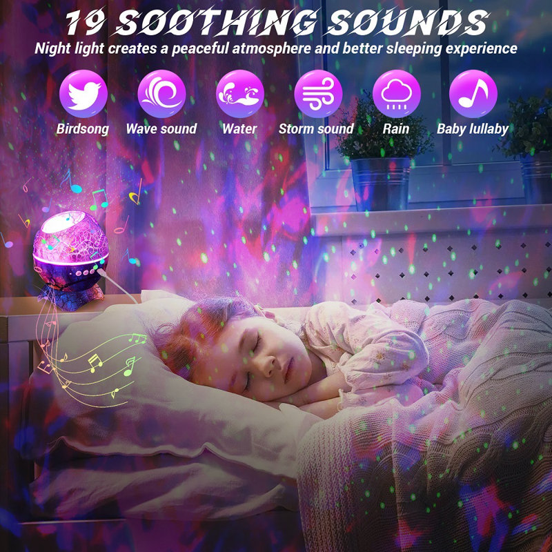 Sound Shocking Bluetooth SpeakerThe spherical structure speaker,so that the sound can be well balanced in each frequency band.Galaxy projector has built-in 19 kinds of comfortable white noise,which can relieve anxiety and help you sleep easily.High-quality Bluetooth speaker sounds,you can connect your mobile phone to play songs at will.The galaxy projector flashes slowly with the relaxing music rhythm or flashes quickly with rock music,creating a sense of three-dimensional atmosphere.