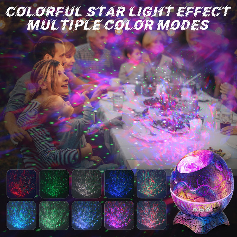 Unique Dinosaur Egg ShapeThis galaxy projector for bedroom is a perfect combination of ABS material and PC lampshade.Crack paint 3D spraying, each crack is manually sprayed and painted.The usb galaxy projector program is complicated, the craftsmanship is fine, and the unique 3D crack feeling is carefully created.The dinosaur egg shape full of science fiction, the light in the crack will make people curious and enjoy the fun of science fiction exploration.