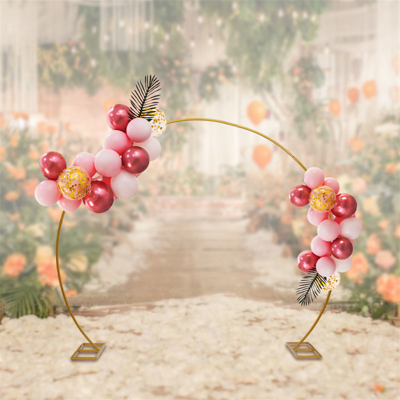 Elegant Design: does not include flowers. Weddings use round wedding arches to create a classic feel and add luster to your wedding. You can decorate them with flowers, green plants, balloons, tulle swag, monograms, garlands, etc. It can be placed at will, combined with the style of the venue, will produce rich visual effects.