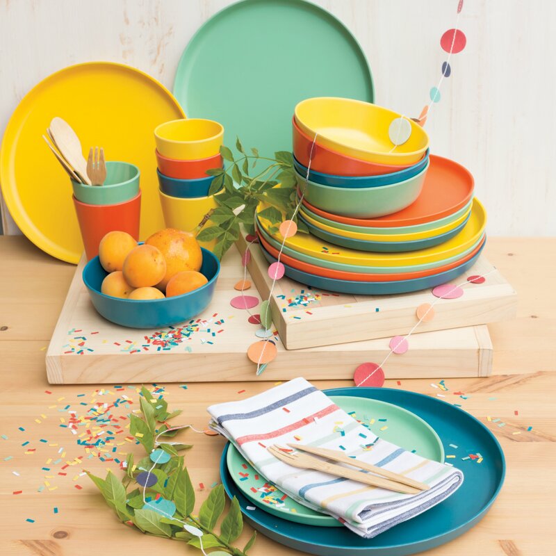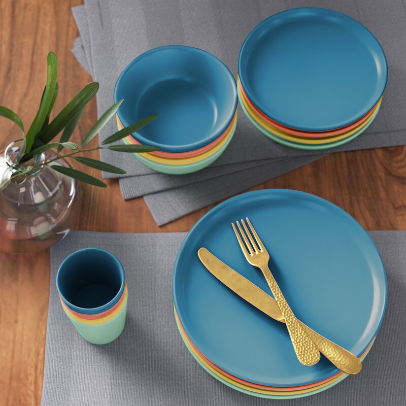 Awash your upcoming barbecue or get-together with a boost of brightness with this 16-piece dinnerware set. This set is a solid standout that fits in with any neutral color palette in your home. Made from food-safe melamine, it features a stackable design that makes it easy to store away in the cabinet and scratch-resistant material that acts as a protective layer. Arriving with four dinner plates, four salad plates, four mugs, and four soup bowls, it adds a pop of color to your table.