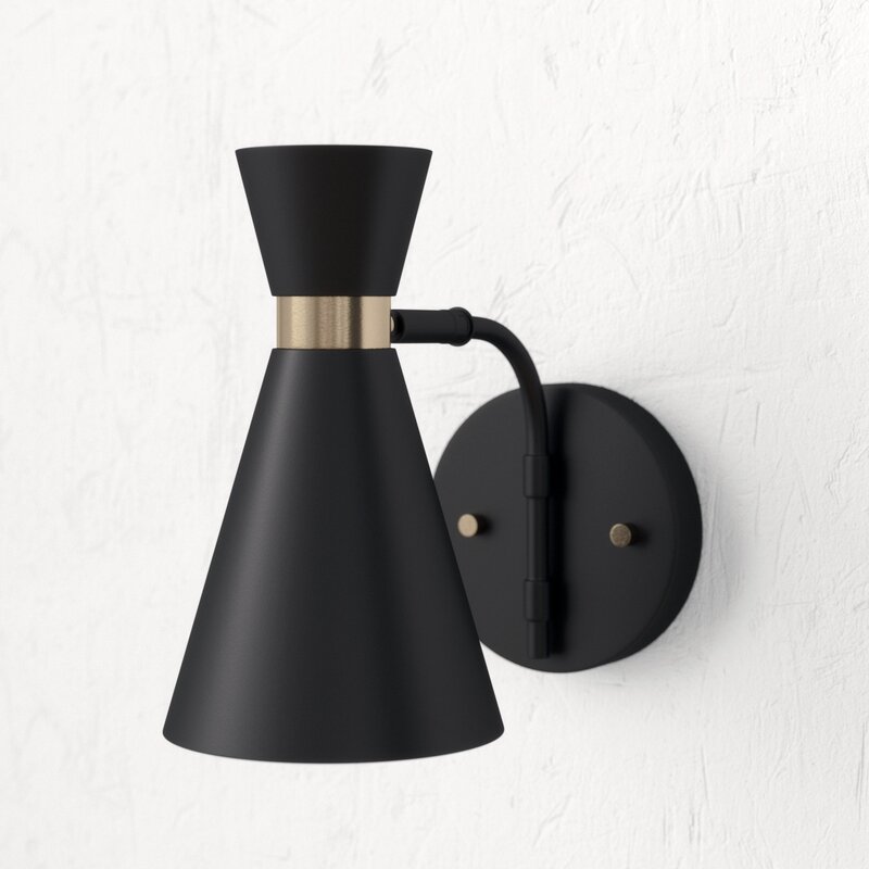 This collection adds a quiet sophistication to any room. Its black finish pairs cleverly with muted satin accents to evoke a luxurious yet industrial feel amongst all its onlookers and perfectly complements any space. The classic hourglass shape of the 1-Light Wall Sconce is ideal for bedrooms and dining rooms alike. Hang it alone or pair it up for a cohesive look. The 60-watt bulb delivers just the right amount of light. With a 360-degree swivel and an easy-to-pivot sconce head, you can direct the light where you need it most. Perfect for lighting paintings, a reading nook, a makeup station, and more! Connect it to a compatible dimmer switch to create an impeccable ambiance for any occasion. Includes all mounting hardware for quick and easy installation and requires one E26/medium base 60-watt bulb (sold separately).