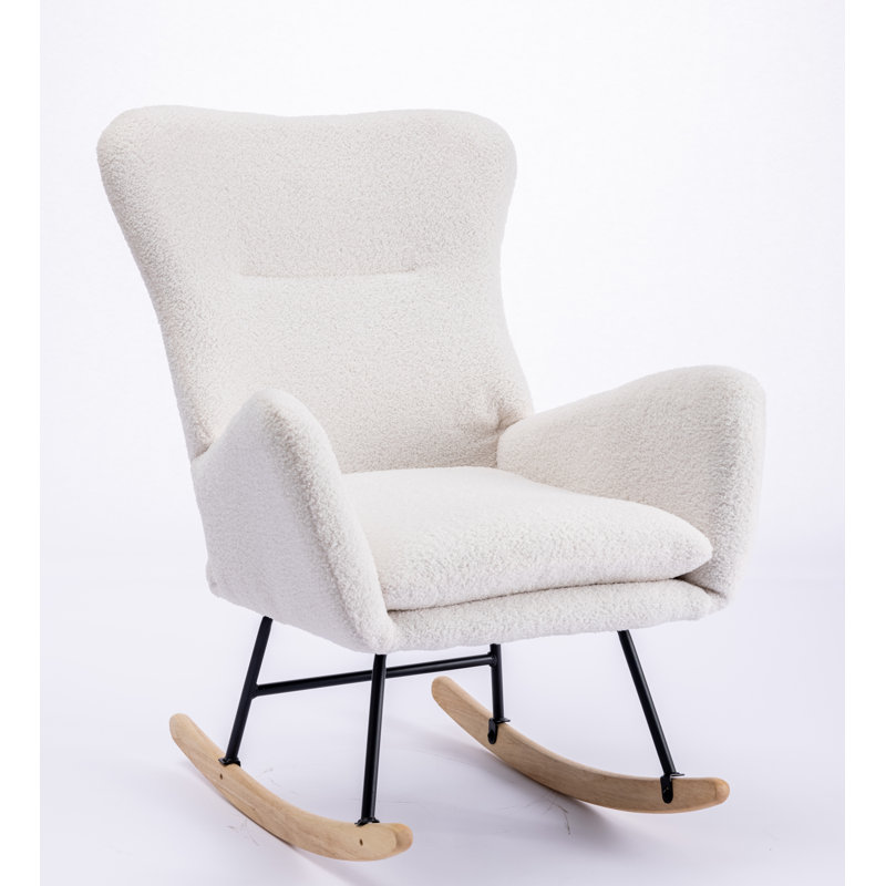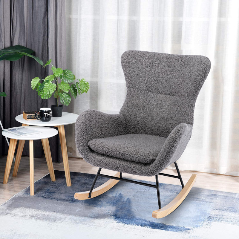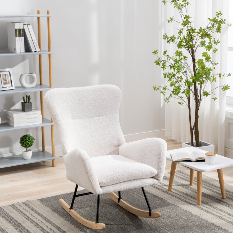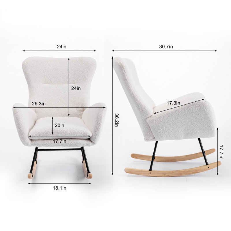 Super comfort: This modern rocking chair is covered with breathable and soft teddy fleece fabric and filled with a high-density soft sponge to create the ultimate seating comfort. The seat with roomy depth and width is firm and well-cushioned, which allows the barrel chair to provide you with ample seating space while optimizing comfort.