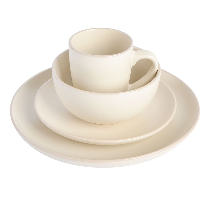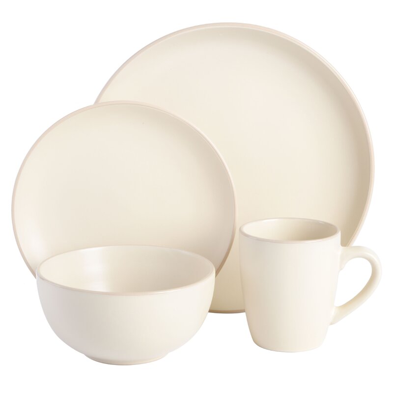 The collection gives you a smooth serene matte finish on stoneware with an eggshell edge completing the soft presentation. The coupe shape gives you a generous surface to show off your culinary masterpieces. Service for 4 with a modern cool look.