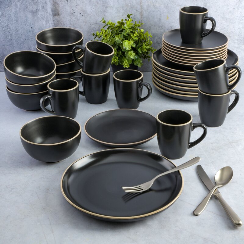 Modern simplicity with an off-white edge along the rim brings style into every kitchen. These plates will make a statement. The round-shaped edges allow for a stackable and space-saving benefit.