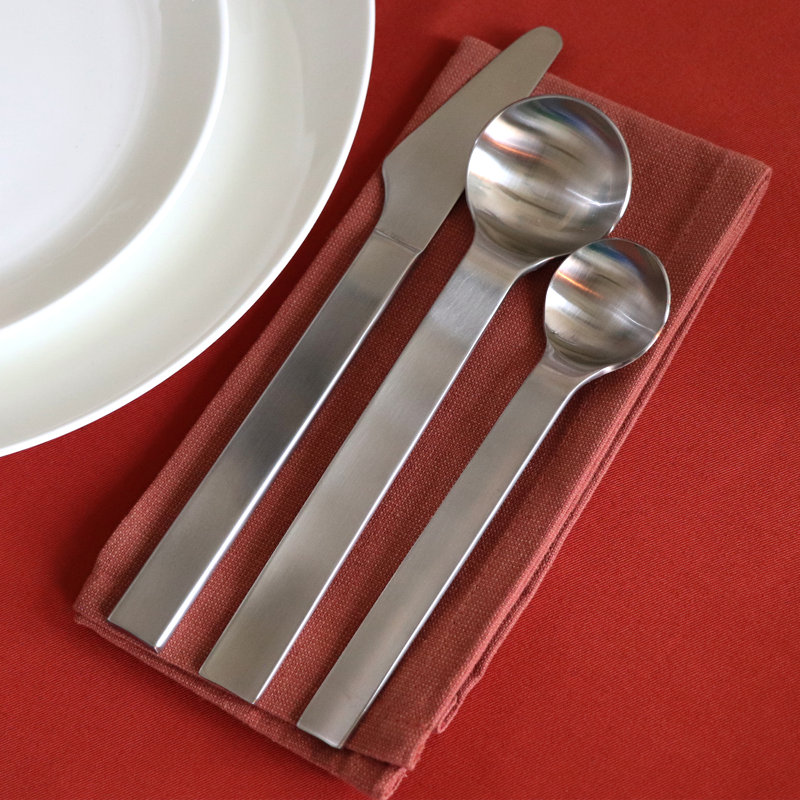 Pure of heart. Pure of mind. Pure of body. Stainless steel flatware in its purest form — an uncomplicated design doesn’t detract from pure flatware’s form and function. A picture of absolute modernity, pure stainless steel flatware has a simple matte finish combined with an almost elementary structure of clean lines and sharp angles. Pure puts the flat in flatware with its streamlined handle, perfect symmetry, and superior ergonomics. An American culinary award winner, they’re guaranteed this modern flatware will be gracing your table for many years. And, for its final injection pure genius pure flatware’s 100% dishwasher-safe construction means you simply pop it in the dishwasher and get on with your day.