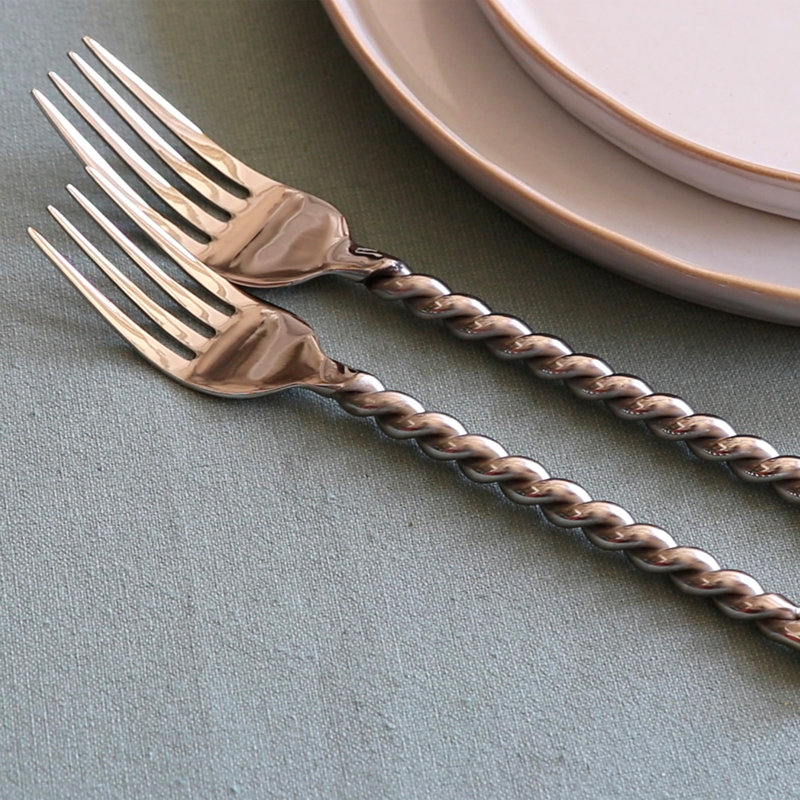 Mirror, mirror on the wall Silver Tear is the fairest of them all. With its mirror-polished finish, stainless steel flatware sets are true reflections of glamorous style. A little bit twisted, Silver Tear flatware has one of our most brilliantly designed flatware patterns. Using it every day allows you to add your creative flair to every meal. Created from heat-forged stainless steel and the highest quality 8mm gauge, this continental flatware is made to last. Having to hand wash everyday flatware is enough to make anyone cry, but with handmade Silver Tear, there will be no crying, as this flatware is 100% dishwasher safe!