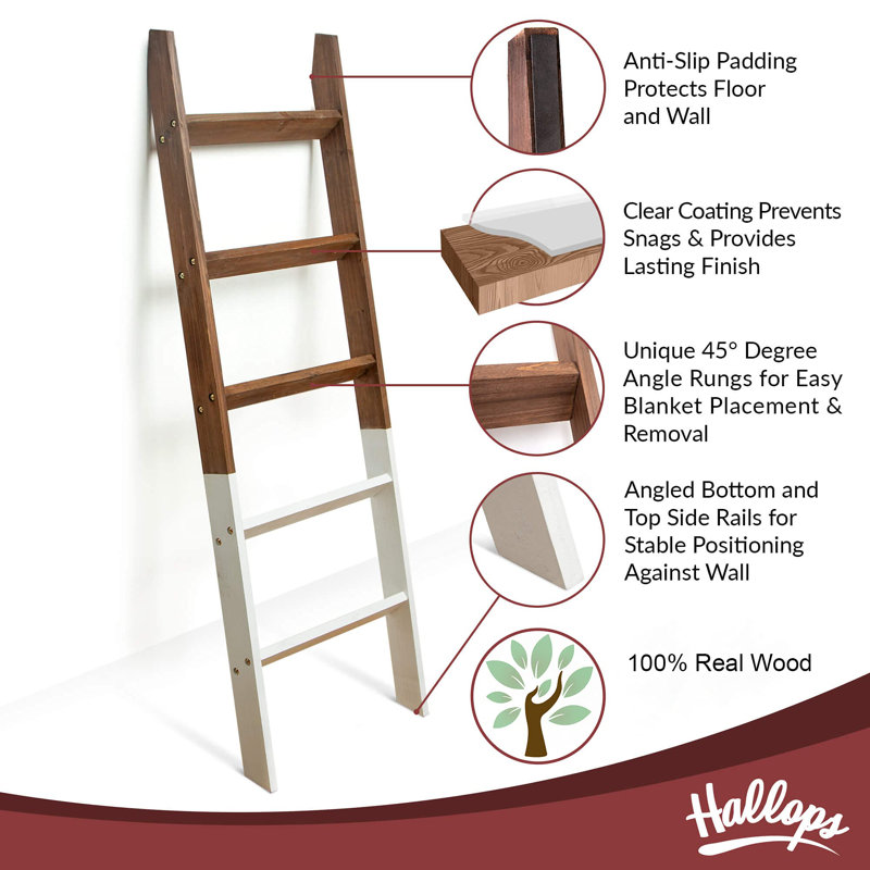Hallops Blanket Ladder Wood Rustic Decorative Quilt Ladder. Farmhouse Ladder White Dipped Brown Two Toned Vintage Wooden Decor. Blankets Holder Rack