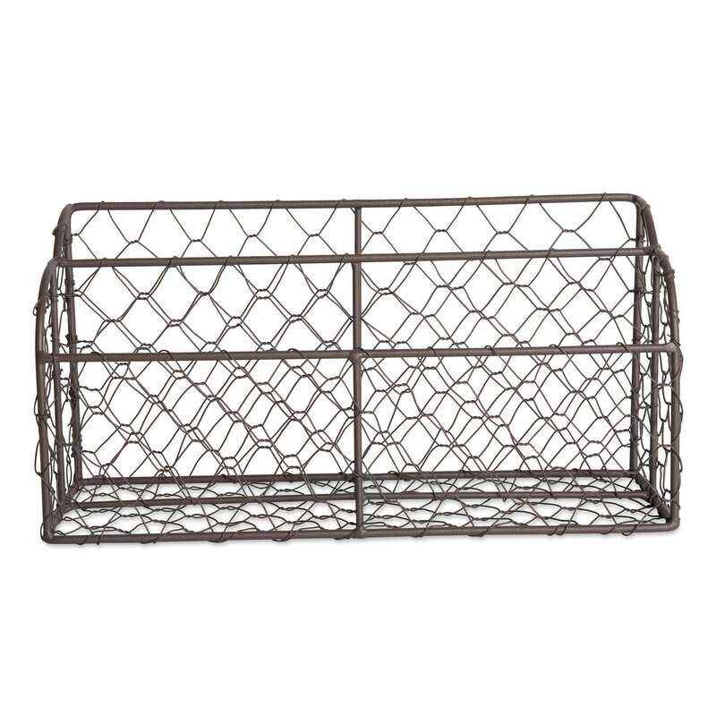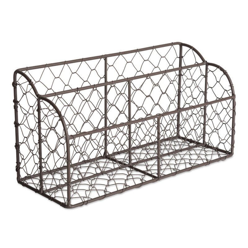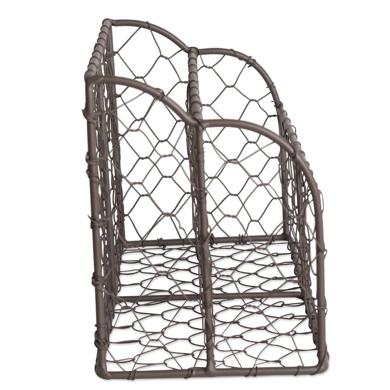 Crafted of antiqued finish “chicken coop†metal wire for a vintage look, and a sturdy frame, this desktop organizer will stylishly house bills and incoming and outgoing letters. Complete your home office with this dual compartment, rustic looking letter holder. Keep on an entryway table so you don’t forget to take the mail to the mailbox or in an office to help sort bills.
