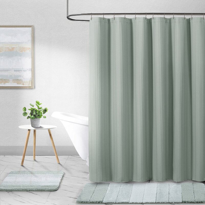 Add a luxury look and elevate your bath with this unique modern farmhouse waffle-weave textured shower curtain with a soft cotton feel. Offered in on-trend solid colors the curtain dimensions are 70″ W x72″ L. Hotel-grade heavyweight fabric ensures durability, reinforced top header with 12 finished holes for easy and quick installation. Hooks, rings, and clips must be purchased separately. Unlined. Made from 100% Polyester. Easy care, machine wash cold, gentle cycle.