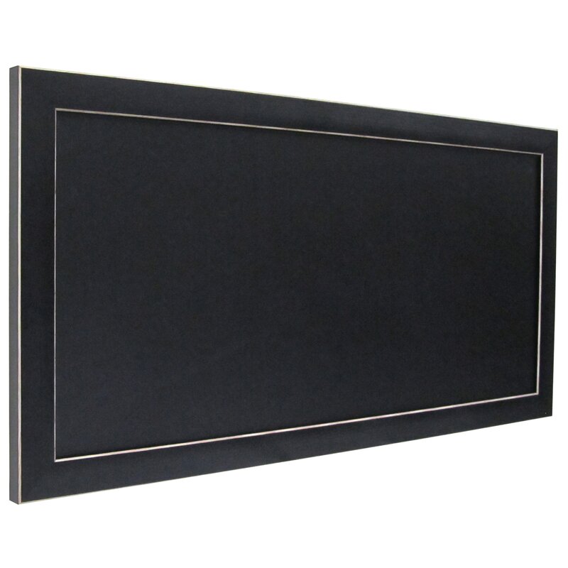 Black framed magnetic chalkboard with 11 inch by 24 inch surface