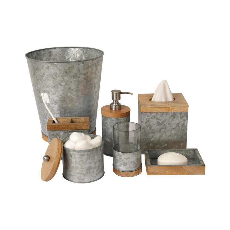 Organize and enhance your bathroom quickly and effortlessly with this vanity set; This set provides you with everything you need to outfit your bathroom sink; Use the items together in larger bathrooms or use them separately when space is limited or your needs change; The items provide storage for daily essentials and the high-quality materials and finishes will complement your home decor; Foam pads on the bases keep the items secure and surfaces free from scratches. Our bathroom decor set features a beautiful design that accents any home’s aesthetic.