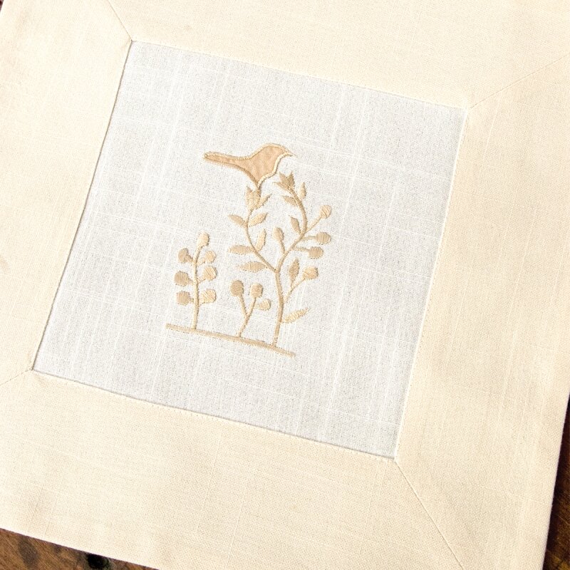 Assorted flora and fauna, even the occasional rabbit, in a celebration of nature and folk art. Firmly grounded in the outdoors, with a welcome touch of whimsy, it just feels right in many locations and types of décor.