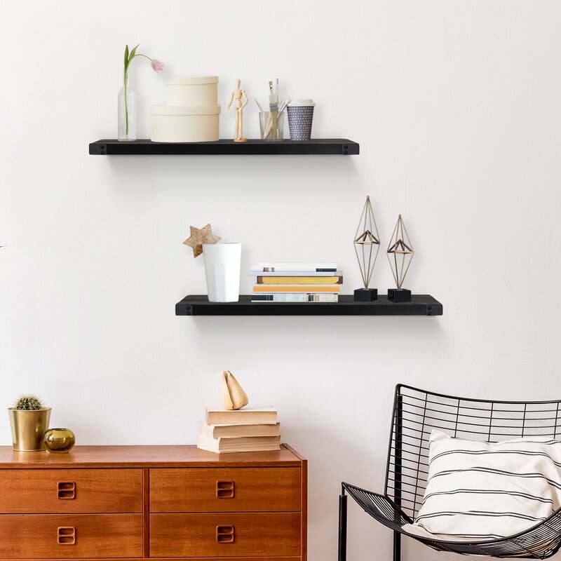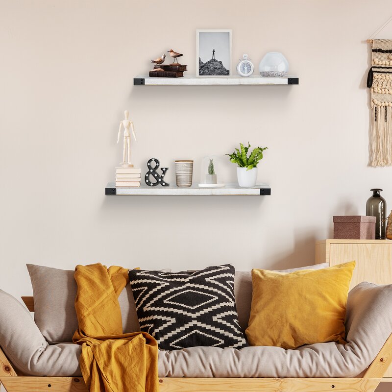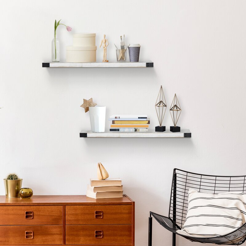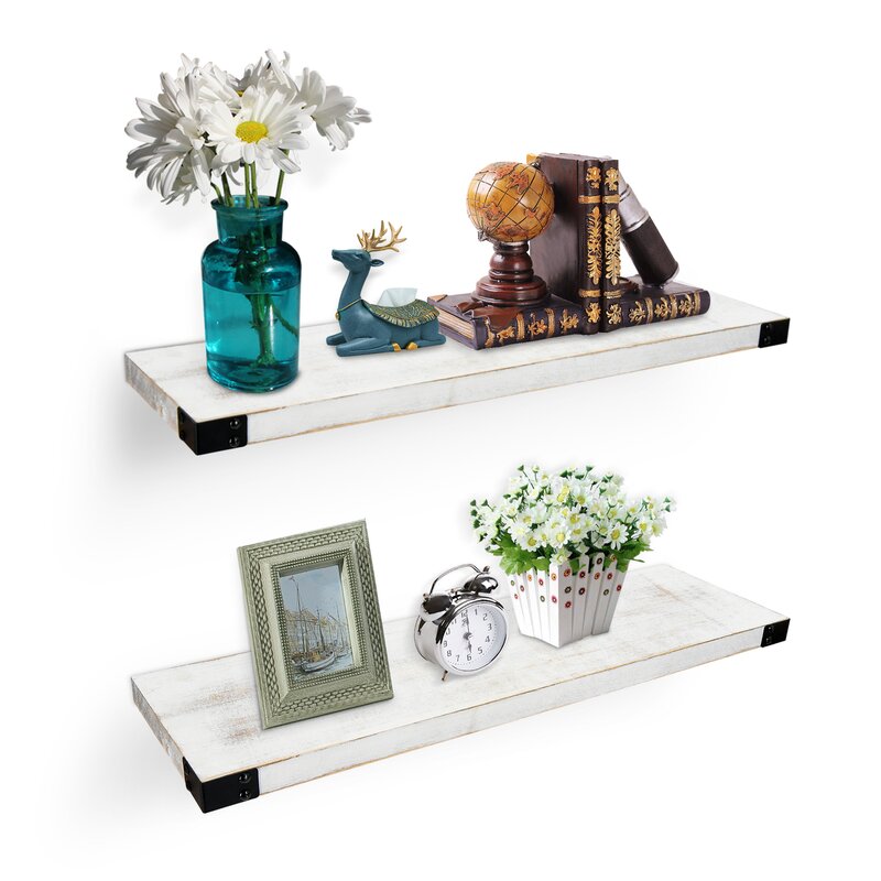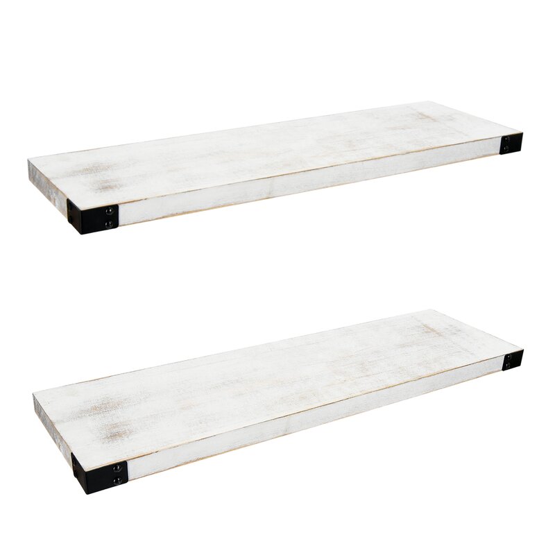 Organize your home and free countertops from clutter with this large floating decorative wall shelf. Rustic in style, this functional wall shelf offers attractive storage space that is perfect for laundry rooms, mudrooms, kitchens, children’s bedrooms, or playrooms. Buy to fill empty wall space and display functional items like towels, laundry soap, kitchen items, or children’s stuffed animals. This functional white wall shelf compliments any room and shows no visible support, making it appear to be floating.