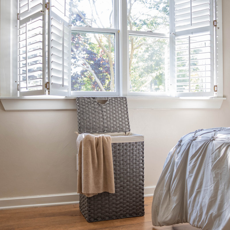 This versatile hamper is made from sturdy synthetic plastic wicker. It measures 16.9″L x 11.8″W x 24″H and comes with a lid and removable liner. We recommend the liner be washed in cold water, gentle cycle and lay flat to dry. The basket folds for easy storage and transport. Perfect for a dorm room, apartment, or home. Meant for small spaces. By Blue Ridge Basket Company.