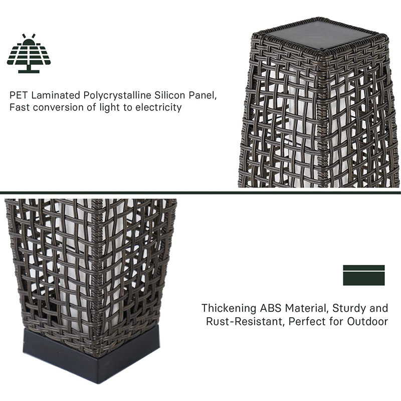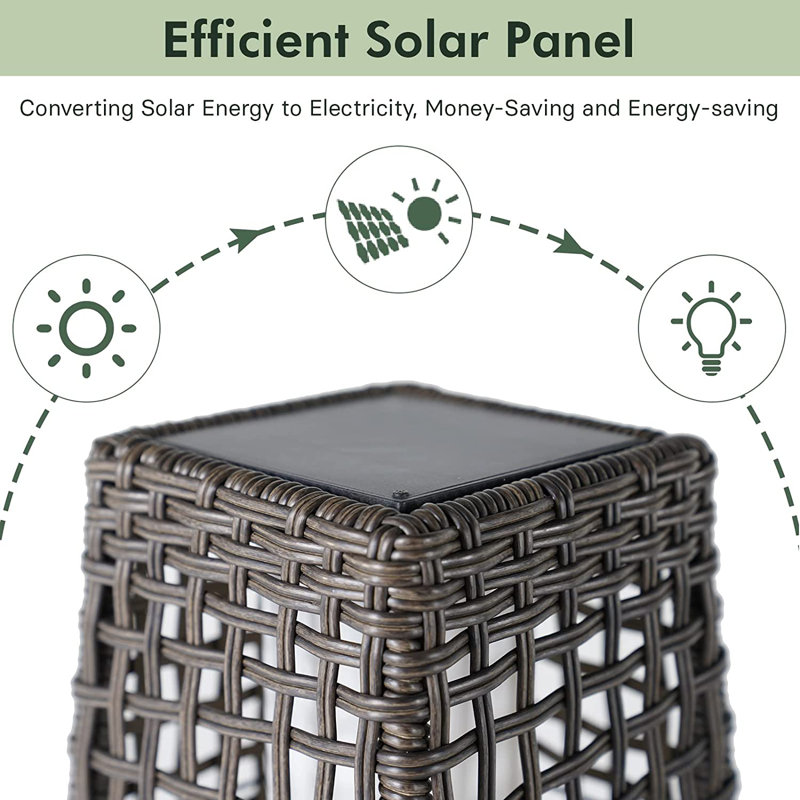 PREMIUM MATERIAL: Powder-coated steel frame is strong, sturdy and rust-resistant. Premium wicker is non-toxic, all-weather, and fade-resistant. Contains a 3.2V, 600mAh rechargeable battery and a premium solar panel.