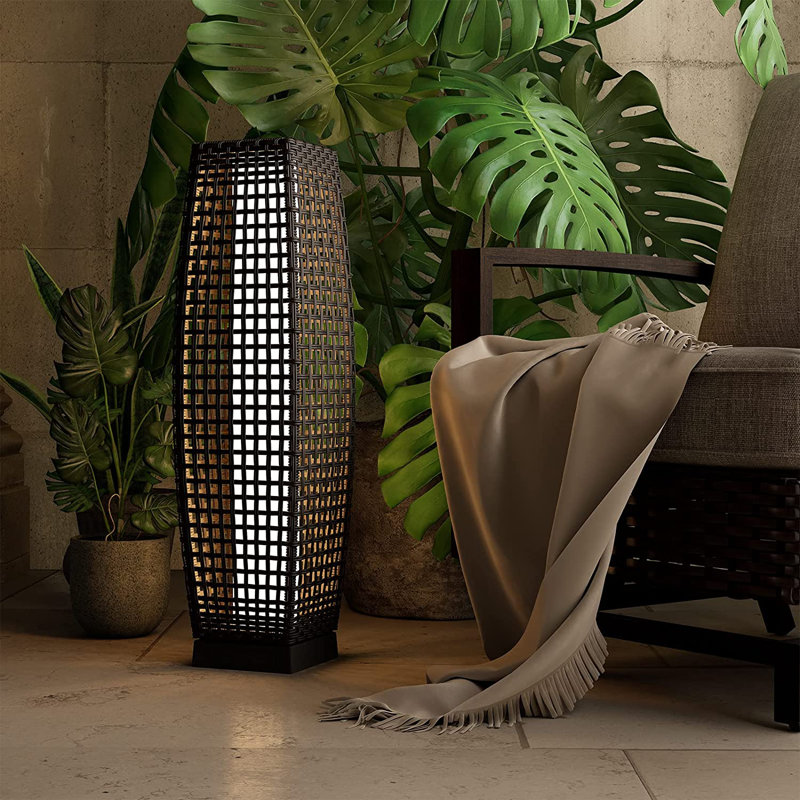 BRIGHT OUTDOOR LIGHTING: Drum shaped wicker floor lamp, providing 40 lumens of light. Giving your family a bright night.