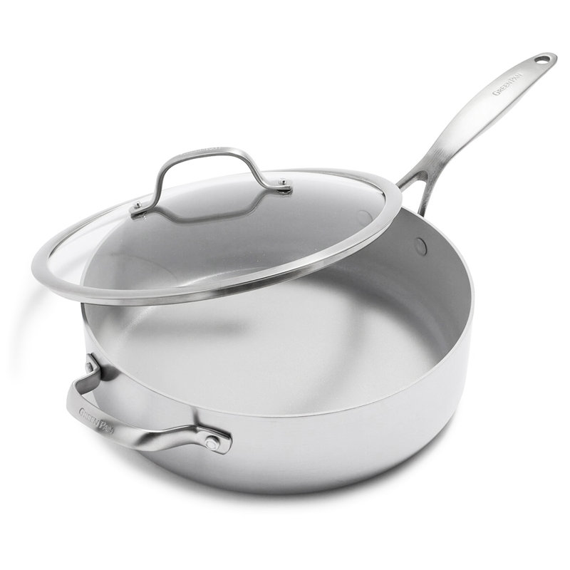 Perfect for one-pan meals, this 5-quart covered sauté pan makes family meals effortless. The Venice Pro collection is painless stainless an incredible blend of nonstick ease and gorgeous stainless steel style. Thermolon can do what other nonstick coatings can’t which means easy searing, braising, and deglazing without worrying about a mess. A unique finish that helps to prevent discoloration and keeps your pan looking new longer. The matte-finished, riveted stainless steel handle let you go from stovetop to oven with ease. This 5-quart pan wipes clean, but it’s dishwasher safe for big messes. Suitable for all cooking surfaces including induction.
