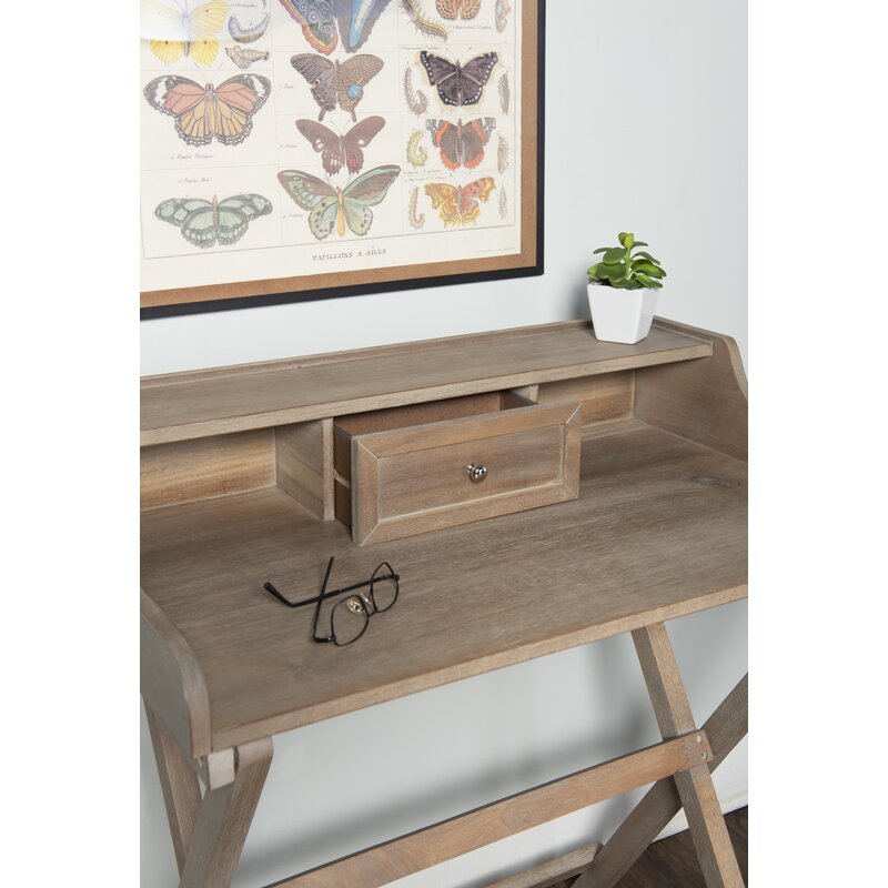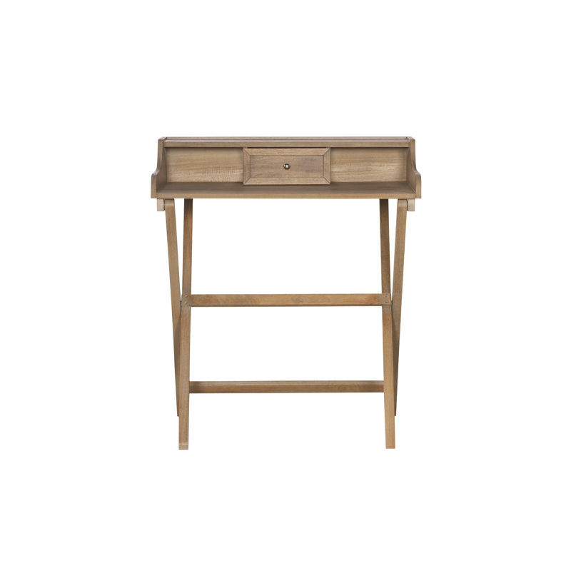This folding desk is perfect for adding work space to any area of your home. The spacious worktop makes finishing homework, studying, or writing comfortably. A single storage drawer is perfect for keeping small work necessities close at hand. When finished, simply fold up the desk and store it to save space when needed. The rustic brown finish is an easy neutral that complements a variety of existing decor styles.