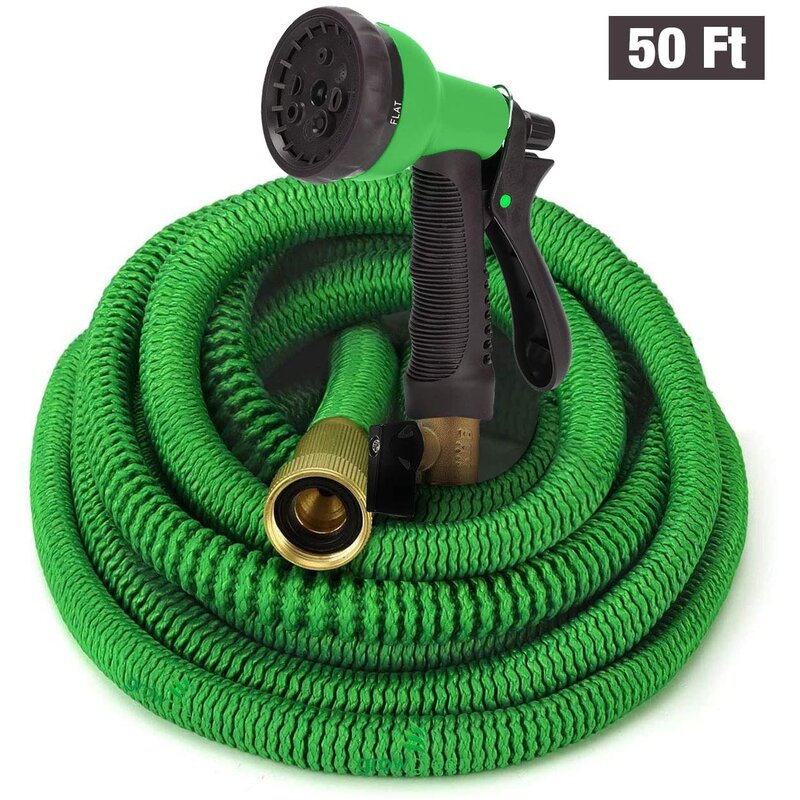 Enjoy gardening again with this space-saving expandable garden hose! Watch the innovative expandable hose design grow before your eyes as the tubing fills with water and extends to nearly three times its size. Made with a durable,pressure-resistant latex material, these hoses are safe for average water pressure and will not burst, leak, or break. When not in use, the garden hose shrinks down for easy storage and is super easy to roll up without kinking or twisting. Made with solid brass fittings, indestructible metal connectors, This watering hose has an 8 pattern hose spray nozzle included, these garden hoses are made to last and will bring lushness and life to your garden.